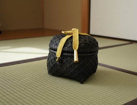 燻煙千島笹重ね編み茶籠